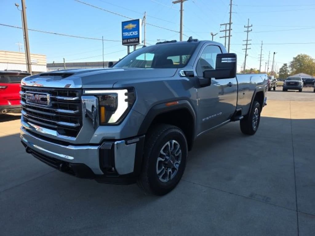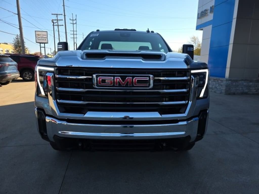 Sterling Metallic 2026 GMC Sierra 2500HD SLE 4WD 10-Speed Automatic10-Speed Automatic, 4WD, Jet Black w/Cloth Seat Trim, 120-Volt Bed Mounted Power Outlet, 120-Volt Instrument Panel Power Outlet, 17 Machined Aluminum Wheels, 2 Charge/Data USB Ports, 2 Speakers, 2-Speaker Audio System Feature, 2-Speed Electronic Shift Transfer Case, 3.73 Rear Axle Ratio, 4-Way Manual Driver Seat Adjuster, 4-Way Manual Passenger Seat Adjuster, 4-Wheel Disc Brakes, ABS brakes, Air Conditioning, Alloy wheels, AM/FM radio: SiriusXM with 360L, Apple CarPlay/Android Auto, Auto High-beam Headlights, Automatic Emergency Braking, Brake assist, Buckle to Drive, Bumpers: chrome, Chrome Surround Grille w/Chrome Insert Bars, Cloth Seat Trim, Compass, Deep-Tinted Glass, Delay-off headlights, Driver door bin, Driver vanity mirror, Dual front impact airbags, Dual front side impact airbags, Electronic Stability Control, Emergency communication system: OnStar, Following Distance Indicator, Forward Collision Alert, Front 40/20/40 Split-Bench Seats, Front anti-roll bar, Front Center Armrest w/Storage, Front Pedestrian Braking, Front reading lights, Front wheel independent suspension, Fully automatic headlights, Heated door mirrors, Heavy-Duty 80 Amp Battery, Illuminated entry, IntelliBeam Automatic High Beam On/Off, Keyless Open & Start, Lane Departure Warning System, Low tire pressure warning, Occupant sensing airbag, OnStar Services Capable, Outside temperature display, Overhead airbag, Overhead console, Panic alarm, Passenger door bin, Passenger vanity mirror, Pickup Box, Power door mirrors, Power steering, Power windows, Push Button Start, Radio: AM/FM w/Premium GMC Infotainment System, Rear step bumper, Remote keyless entry, SiriusXM w/360L Trial Subscription, Speed control, Steering Wheel Audio Controls, Steering wheel mounted audio controls, Suspension Package, Tachometer, Tilt steering wheel, Traction control, Trip computer, Turn signal indicator mirrors, Variably intermittent wipers, Voltmeter, Wireless Phone Projection, 10-Speed Automatic, 4WD, Jet Black w/Cloth Seat Trim.