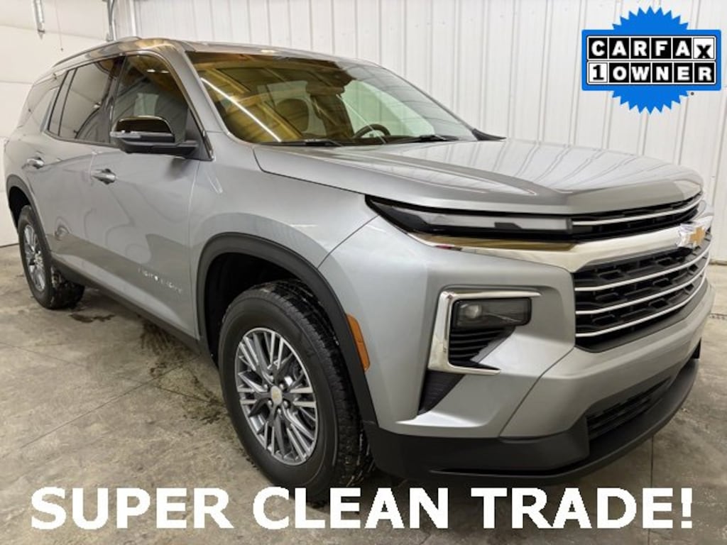 CLEAN CARFAX, ONE OWNER, LOCAL TRADE-IN, 3rd row seats: split-bench, 4-Way Manual Front Passenger Seat Adjuster, 4-Wheel Disc Brakes, 6 Speakers, 6-Speaker Audio System Feature, 8-Way Power Driver Seat Adjuster, ABS brakes, Air Conditioning, AM/FM radio: SiriusXM with 360L, Apple CarPlay/Android Auto, Auto High-beam Headlights, Automatic temperature control, Brake assist, Bumpers: body-color, Compass, Delay-off headlights, Driver 4-Way Power Lumbar Seat Adjuster, Driver door bin, Driver vanity mirror, Dual front impact airbags, Dual front side impact airbags, Electronic Stability Control, Emergency communication system, Exterior Parking Camera Rear, Four wheel independent suspension, Front anti-roll bar, Front Bucket Seats, Front Center Armrest, Front dual zone A/C, Front reading lights, Fully automatic headlights, Heated door mirrors, Heated front seats, Heated steering wheel, Illuminated entry, Low tire pressure warning, Navigation System, Occupant sensing airbag, Outside temperature display, Overhead airbag, Overhead console, Panic alarm, Passenger door bin, Passenger vanity mirror, Power door mirrors, Power driver seat, Power Liftgate, Power steering, Power windows, Preferred Equipment Group 1LT, Premium Cloth Seat Trim, Radio data system, Radio: 17.7 Diagonal Display, Rear air conditioning, Rear anti-roll bar, Rear reading lights, Rear window defroster, Rear window wiper, Remote keyless entry, Security system, SiriusXM w/360L, Speed control, Speed-sensing steering, Spoiler, Steering wheel mounted audio controls, Tachometer, TBD Axle Ratio, Telescoping steering wheel, Tilt steering wheel, Traction control, Trip computer, Turn signal indicator mirrors, Variably intermittent wipers, Voltmeter, Wheels: 18 Grazen Metallic Machined-Face Aluminum, TILT & TELESCOPING STEERING, ACTIVE NOISE CANCELLATION, AUTOSENSE POWER LIFTGATE, 11 DIAGONAL COLOR DISPLAY, REAR PARK ASSIST, FOLLOWING DISTANCE INDICATOR, FORWARD COLLISION ALERT, LANE KEEP ASSIST, LANE DEPARTURE WARNING, DUAL CLIMATE CONTROL, REMOTE START, APPLE CARPLAY CAPABLE, ANDROID AUTO CAPABLE, FREE XM RADIO & ON*STAR FOR A LIMITED TIME, and MUCH MORE!